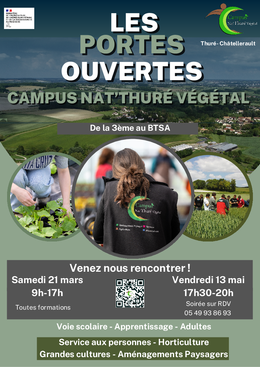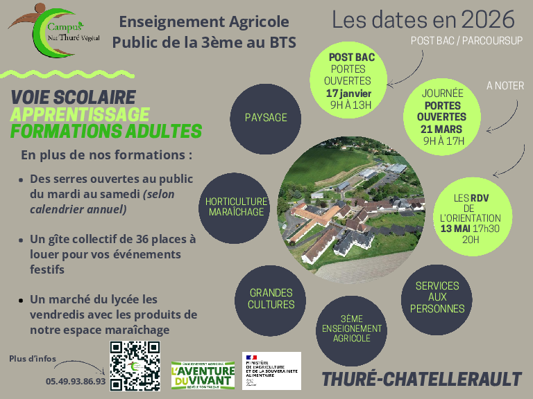 Je vous invite chaleureusement à découvrir notre dynamique lors de nos journées portes ouvertes du samedi 21 mars 2026 et des Floricul’Thuré le samedi 9 mai 2026. Vous pourrez également visiter nos serres horticoles pédagogiques.